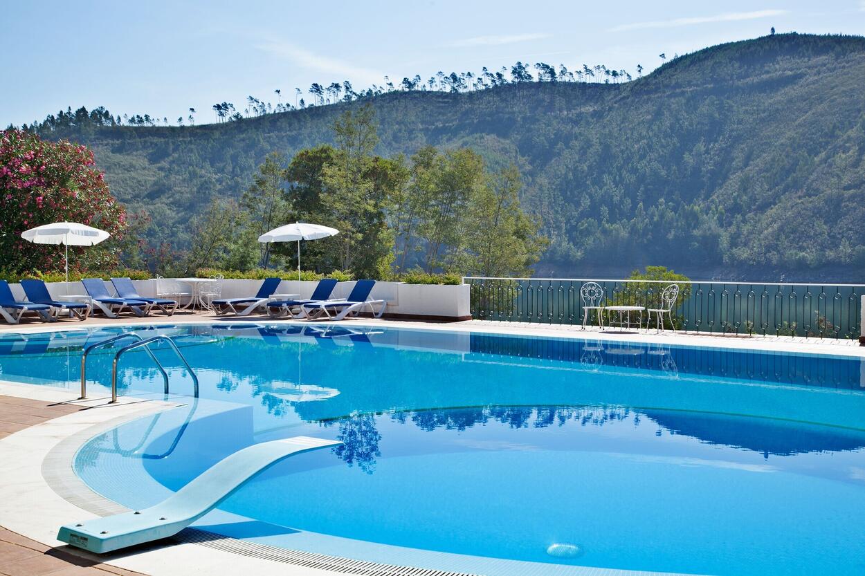 O Lago Azul Eco Hotel proporciona toda a calma e serenidade de um lugar verdadeiramente relaxante., com uma beleza única que inclui o rio Zêzere, as suas montanhas com ares puros e e natureza envolvente. Com 20 quartos, decorados com cores quentes, rodeados de madeiras rústicas e paisagens campestres, o hóspede sente uma sensação familiar e acolhedora, como se chegasse à sua segunda casa... aquela que aproveitamos para relaxar. A Estalagem dispõe de 16 quartos e 4 suites, restaurante panorâmico, bar e sala de reuniões com capacidade para mais de 100 pessoas. Dispõe também piscina, sala de jogos, ténis, minigolfe e parque para crianças.