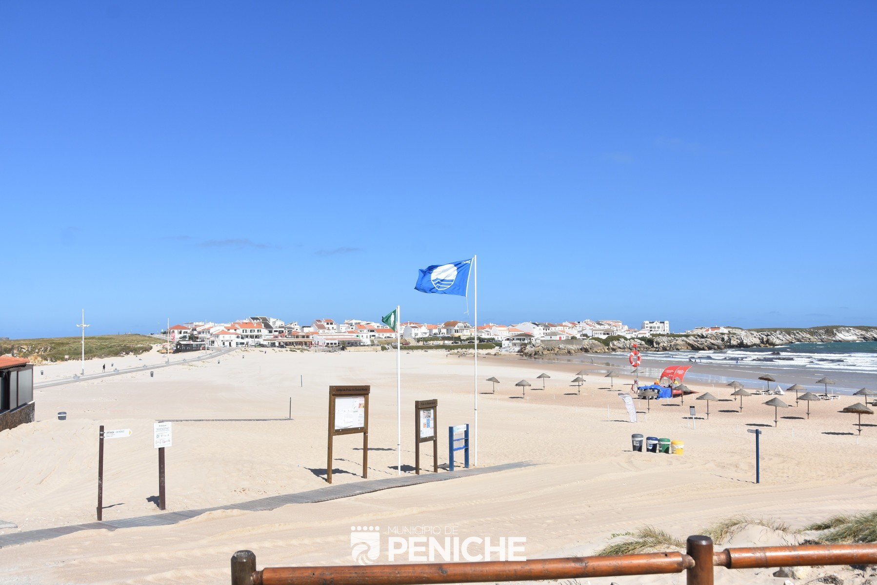 areal com extensão de 300 m, sendo 100 m da linha de praia relativos à Bandeira Azul.